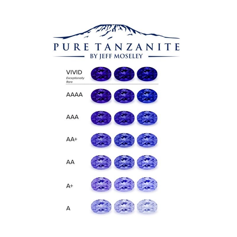 • Системы классификации танзанита не стандартизированы, и ни один официальный геммологический орган (например, GIA) не признает термин «AAA» в качестве формальной классификации. Однако в ювелирной торговле AAA часто используется для описания камней с насыщенным или ярким цветом в желаемом фиолетово-синем или сине-фиолетовом диапазоне в сочетании с превосходной чистотой (обычно без видимых включений). «AA», в свою очередь, описывает второй по желательности цвет и немного более низкую цену. Термин «AAA» стал популярен в онлайн-торговле как сокращенное обозначение высокого качества, но это субъективное торговое описание, а не научная классификация.