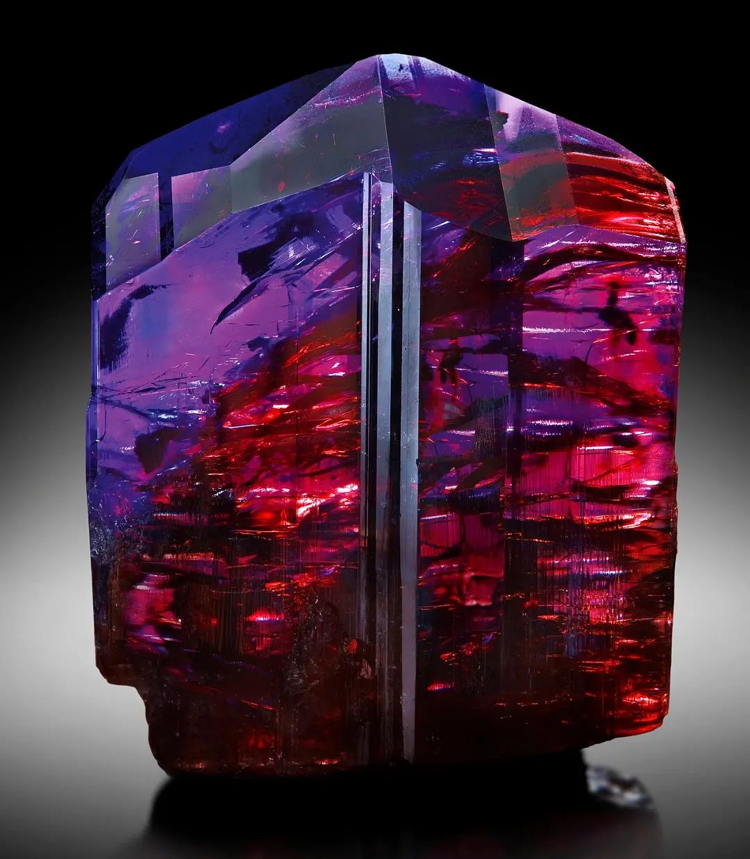 • Танзанит — один из немногих известных человеку трихроических камней, то есть он способен демонстрировать три цвета в одном и том же камне. Когда свет проходит через камень, он вибрирует в разных плоскостях, из-за чего камень приобретает разный цвет в зависимости от того, под какой осью вы на него смотрите. Три цвета, которые можно увидеть в танзаните, — это оттенки синего, фиолетового и красного. В исключительных образцах танзаниты имеют насыщенный фиолетово-синий цвет с красными вспышками плеохроизма, исходящими изнутри камня. Из-за сильного плеохроизма камня, в обработанных образцах обычно наблюдается сочетание синих и фиолетовых оттенков в широком диапазоне тонов.