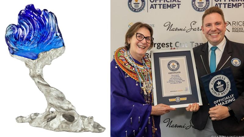 · * Резной синий танзанит, весом 703 карата, выполненный художницей Наоми Сарна, был занесен в Книгу рекордов Гиннеса как самый крупный в мире ограненный танзанит.